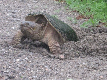 Snapping Turtle laying its eggs on the roadside at our farm gate. A sign of our diversity and healthy environment. Let's treasure it!